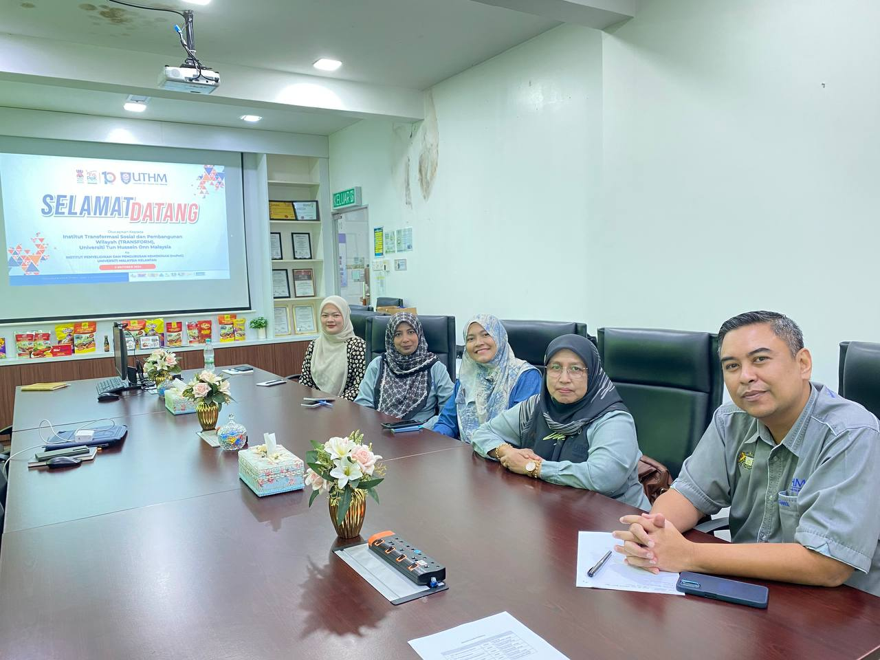 Institut Transformasi Sosial dan Pembangunan Wilayah (TRANSFORM), Universiti Tun Hussein Onn Malaysia telah menyertai pertemuan bersama Lembaga Layanan Pendidikan Tinggi (LLDIKTI) Wilayah X di Jambi, Indonesia. Menurut Timbalan Pengarah TRANSFORM iaitu Dr. Hjh. Fauziah Ani, tujuan utama pertemuan ini adalah untuk membincangkan kerjasama penyelidikan bersama, penganjuran seminar dan mempromosikan pengajian pascasiswazah di UTHM. Turut hadir adalah Prof. Madya Dr. Mohd Zaky Noh iaitu Dekan Pusat Pengajian Siswazah UTHM dan Dr. Shahidah Hamzah iaitu Felo Penyelidik TRANSFORM UTHM.