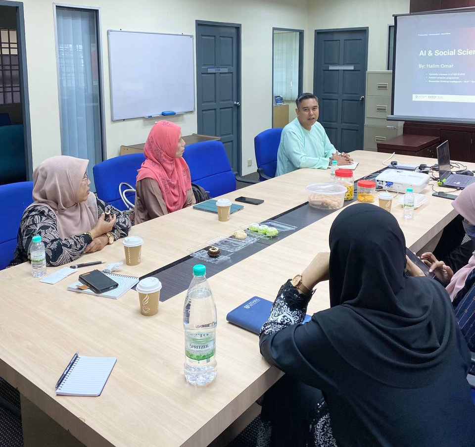 Institut Transformasi Sosial dan Pembangunan Wilayah (TRANSFORM), Universiti Tun Hussein Onn Malaysia (UTHM) telah menganjurkan Bengkel Artificial Intelligence (AI) dan Sains Sosial pada 9 Mei 2024 bertempat di Bilik Mesyuarat TRANSFORM, Blok B1, UTHM. Bengkel ini bertujuan untuk memaklumkan kepada semua Staf dan Felo Penyelidik TRANSFORM UTHM tentang konsep pelaksanaan AI dan Sains Sosial bagi meningkatkan kemahiran yang diberikan dengan keperluan semasa untuk memastikan setiap staf sentiasa berada pada tahap kompetensi yang cemerlang. Serta menjadikan semua Staf dan Felo Penyelidik di TRANSFORM mahir dalam penggunaan teknologi AI dan diaplikasikan dalam tugasan hariannya mengikut keperluan semasa. Bengkel ini telah disampaikan oleh Encik Abdul Halim bin Omar iaitu Pensyarah Jabatan Teknologi Maklumat, Pusat Pengajian Diploma, UTHM. Seramai enam (6) orang peserta yang telah menyertai bengkel ini iaitu Pengarah TRANSFORM, Timbalan Pengarah TRANSFORM, tiga (3) orang Felo Penyelidik TRANSFORM dan seorang Pembantu Tadbir TRANSFORM.